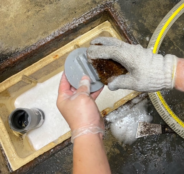- 既に排水管に付着している油脂汚泥(スカム)を除去