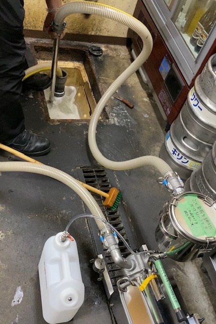 ・バキューム清掃では、グリストラップ内の汚物だけを吸引する作業なので、管内までは行き届きません。しかし、石けん化工法では、汚水を石けん水に変えるシステムなので、管内の閉塞防止、ニオイの軽減だけではなく、泡のしくみによりゴキブリやコバエの気門を塞ぎ駆除もできます。