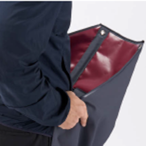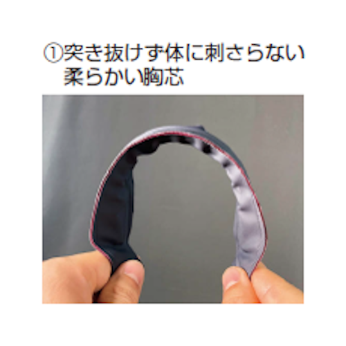 塩化ビニール製のエプロンです。厚みが0.4mmと他社同等品と比較して厚みがあり、丈夫で耐久性に優れます。ヒモを使わず、腰のワイヤーを広げて着用するため、着脱が簡単です。他社品と比べ、胸の芯が柔らかく、ワイヤーを取り外して本体の内側が洗いやすい構造となっています。