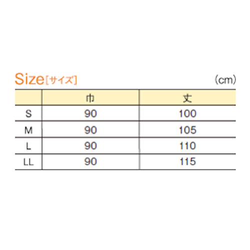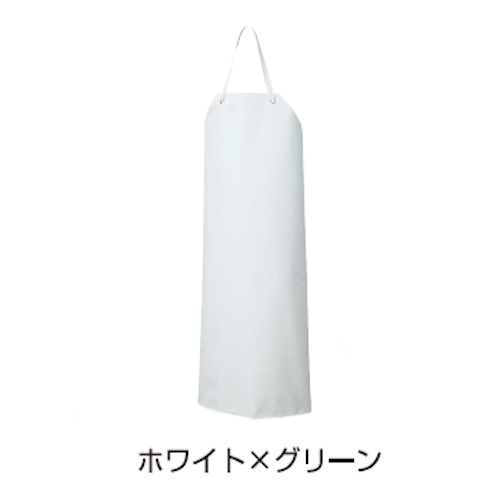 塩化ビニール製のエプロンです。厚みが0.4mmと他社同等品と比較して厚みがあり、丈夫で耐久性に優れます。ヒモは首掛けタイプになります。