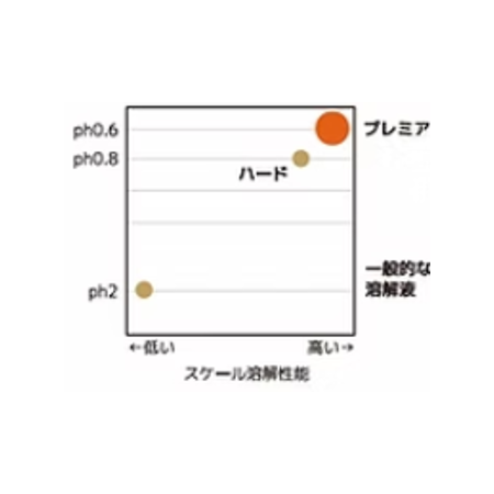 わずか5分ほどでスケールを脅威の早さで除去! なのに、手で触れる生分解性で環境に人に優しい! 次世代省エネ スケール除去剤です。驚異の速さで熱交換器のスケール、配管のスケール、カルシウムを溶かす! 長時間手で触っても大丈夫なのに驚異的な早さで溶かせます。カルシウムが要因の諸問題を一気に解決してくれる衝撃の溶解液。サビ落としや尿石除去にも効果絶大です。